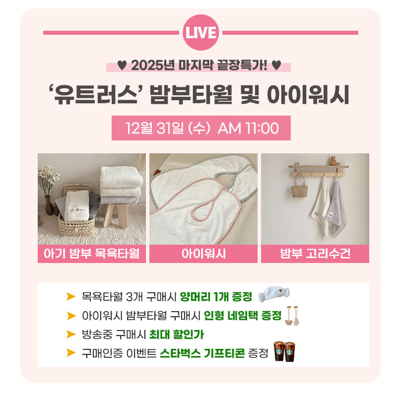종료 | [크쇼라] 2025년 마지막 끝장특가!밤부타월+아이워시