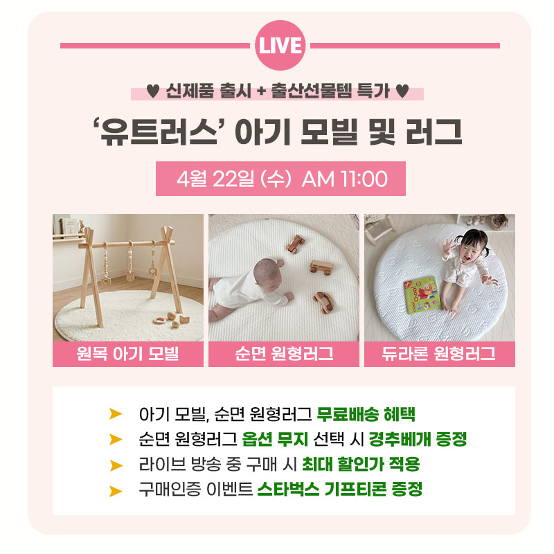 ▶ 아기 모빌, 순면 원형러그 구매 시 무료배송 혜택