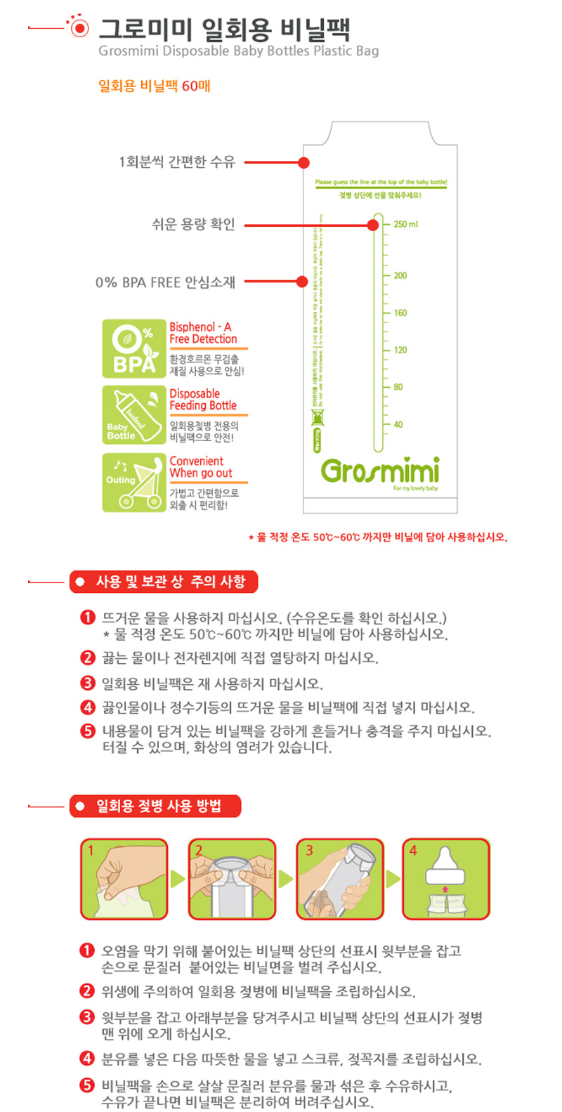 일회용 비닐팩 사용으로 젖병 세척 없이