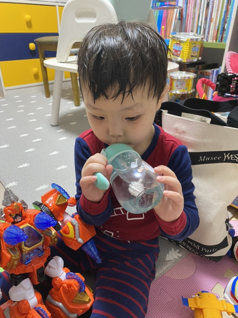 그래서 어린이집 뿐만 아니라 집에서도 새지 않는 빨대컵을 사용해 물을 어린 아이들은 많이 주죠